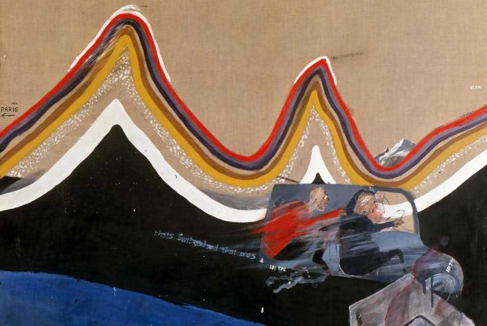 “Flight to Italy – Swiss Landscape” – David Hockney. I used to teach design to a college in Monterrey, Mexico as a visiting lecturer. One of my favourite places to go were the la Huasteca mountains. This painting reminds me of those mountains and the way Hockney has painted the layers of strata blows my mind.